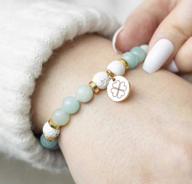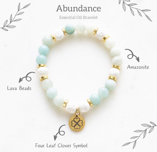 Attract abundance and positive energy with this Abundance Amazonite Essential Oil Bracelet, designed to combine the metaphysical healing power of crystals with the soothing benefits of aromatherapy. Crafted with natural amazonite and lava beads, the bracelet also functions as a diffuser for essential oils. Simply add a drop of the included Eucalyptus essential oil to the lava beads to encourage calm, clarity, and balance throughout the day.
